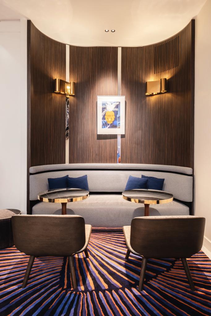 No coração do hotel, nosso Bar incorpora o espírito literário e artístico de Saint-Germain-des-Prés. Acomodados em poltronas confortáveis, o olhar se perde entre as prateleiras de uma biblioteca eclética, onde livros de todos os gêneros se misturam com objetos garimpados.